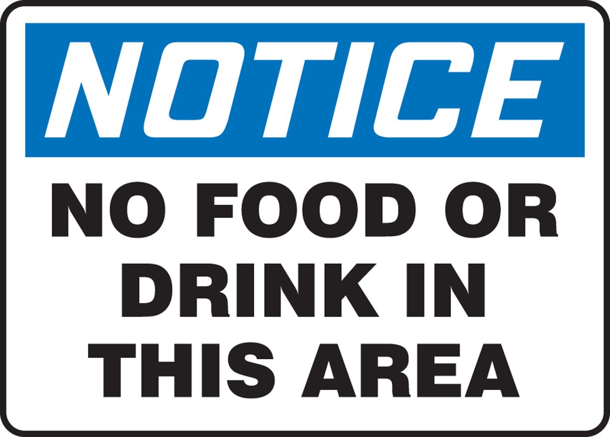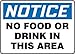 NOTICE NO FOOD OR DRINK IN THIS AREA