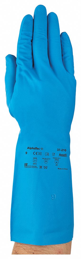 FOOD GLOVES, GAUNTLET CUFF, RAISED DIAMOND GRIP, SZ XXL/11, 13 IN L/8 MIL THICK, BLUE, NITRILE