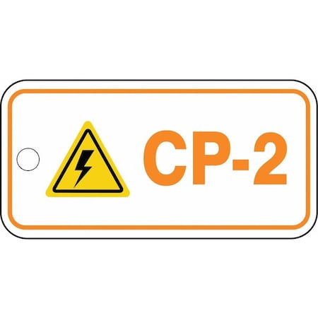 Accuform TDF202XVE Adhesive Dura-Vinyl "CP-2 Control Panel" Energy Source Standard Tag, 1-1/2" W x 3" L, Black/Yellow/Orange on White