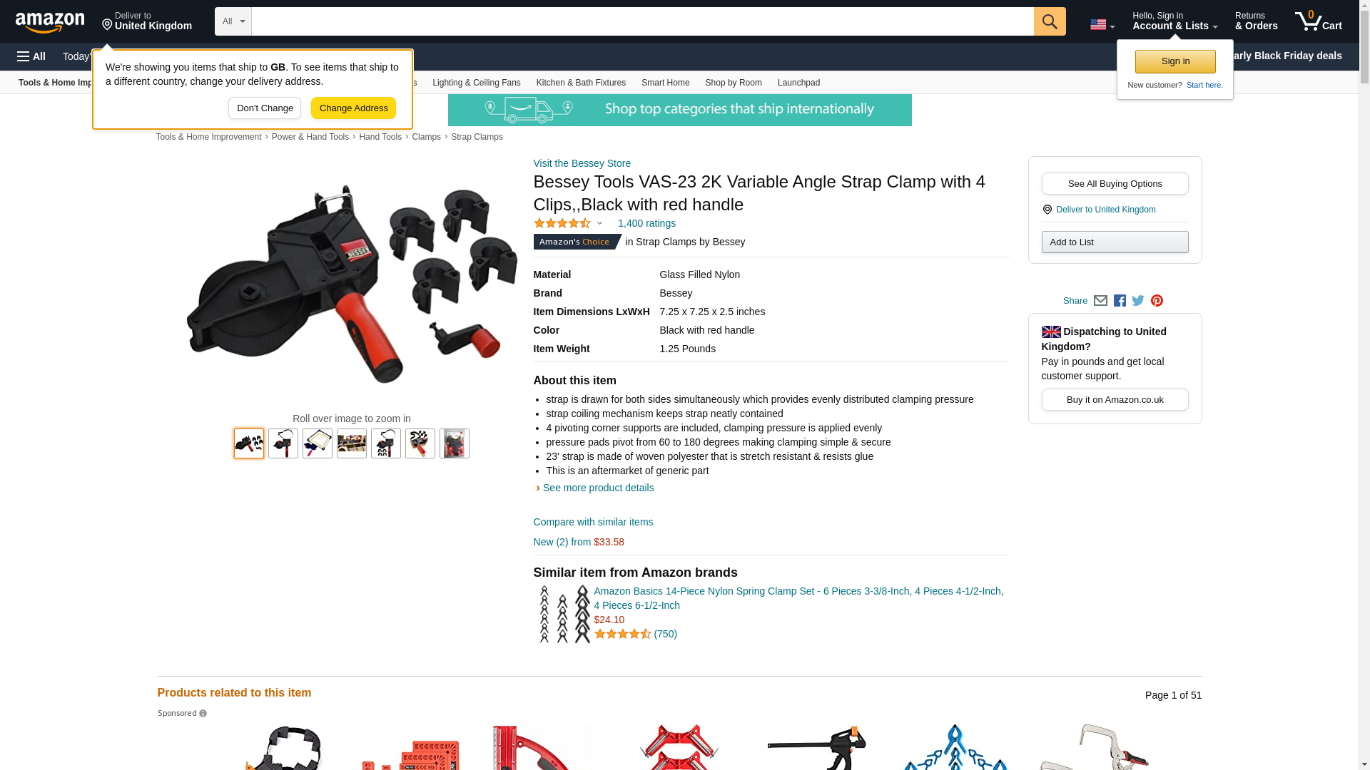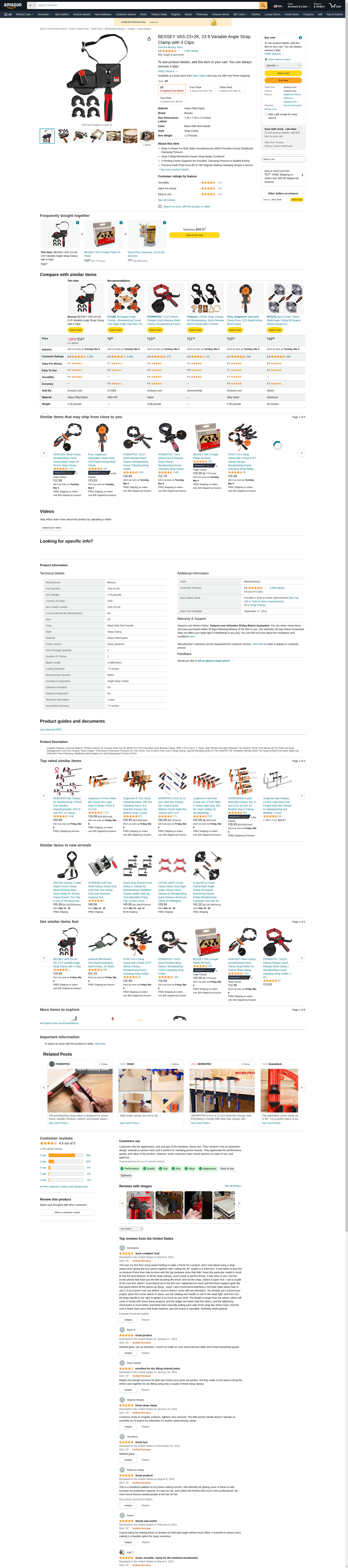 BESSEY VAS-23+2K, 23 ft Variable Angle Strap Clamp with 4 Clips