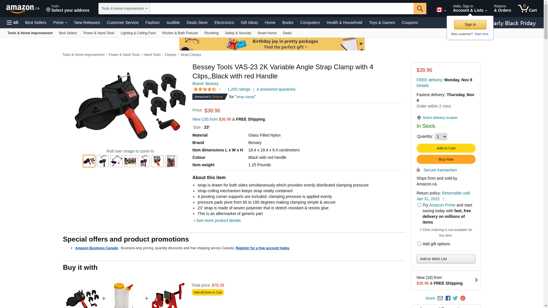 Bessey VAS-23+2K Variable Angle Strap Clamp w/ 2K Composite Handle, 23'. TWO PACK