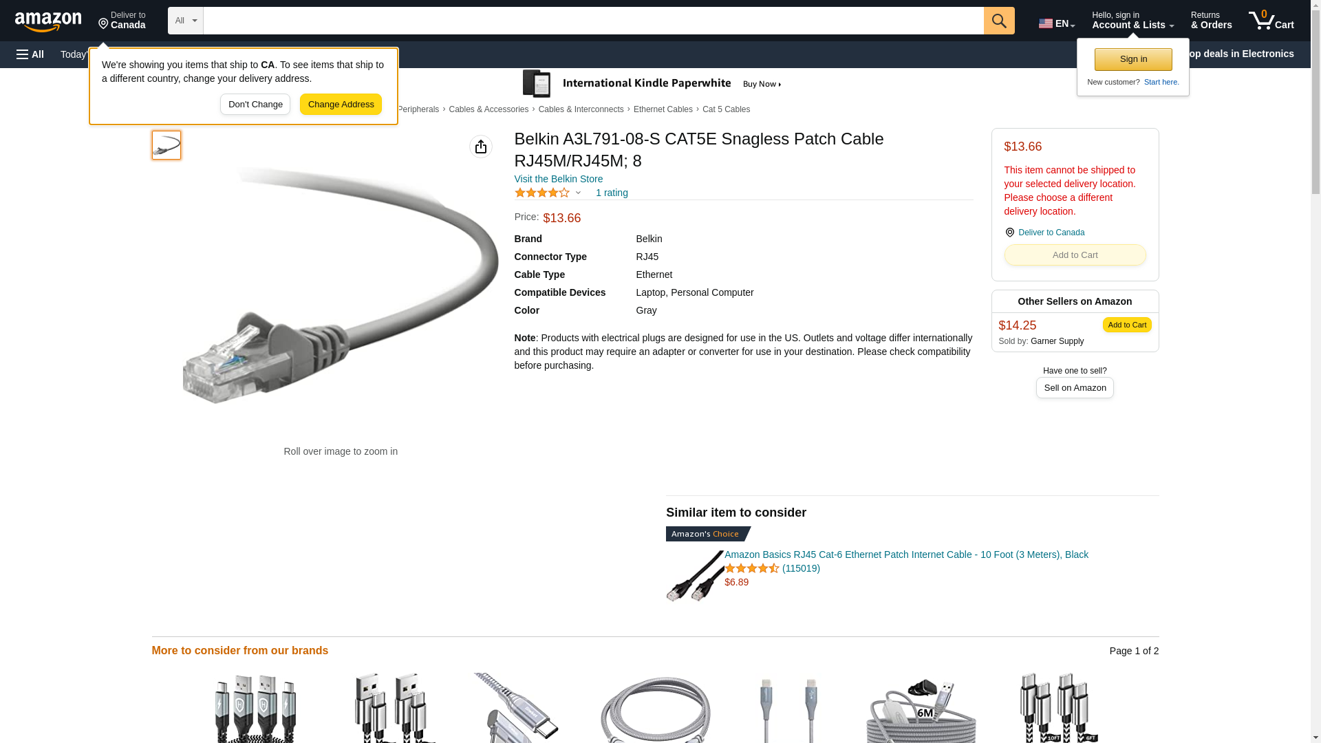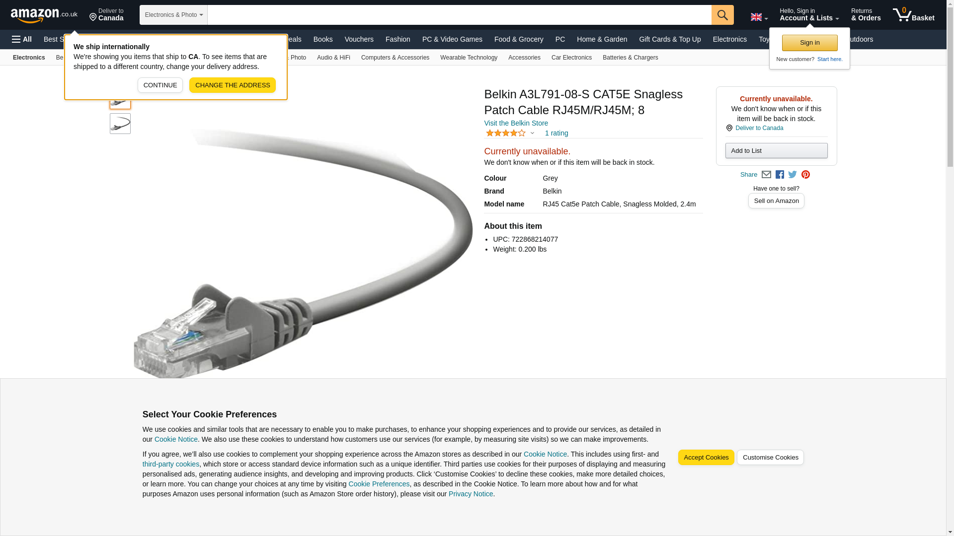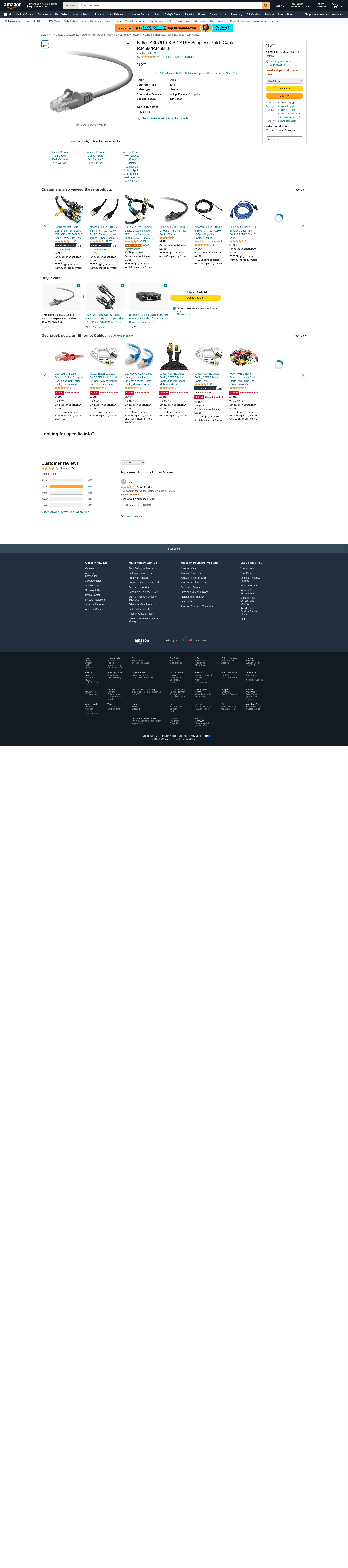 Belkin A3L791-08-S CAT5E Snagless Patch Cable RJ45M/RJ45M; 8