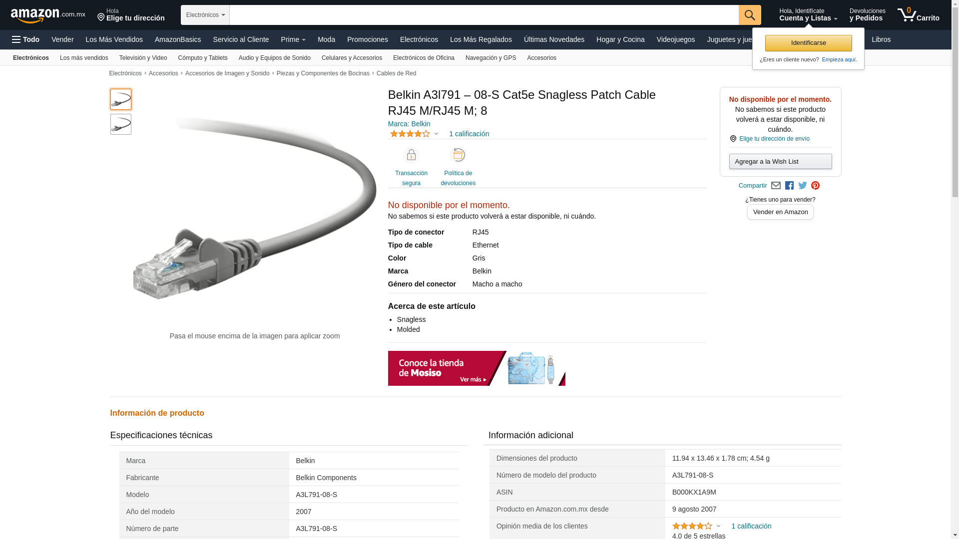 What is a Category 5e patch cable? Think of it as the street that links the houses on your block and all the destinations in town. This cable is used to connect all the hardware destinations on a Local Area Network (LAN). The RJ45 Molded Cat 5e Patch Cable is perfect for use with 10/100 Base-T works. It es plete with RJ45 male-to-male connectors and snagless molded strain relief. PRODUCT FEATURES: Perfect in conjunction with 10 and 100 Base-T; 50 micron gold plated connectors to ensure a clean and clear transmission; Premium snagless-type molding to protect the connection; Exceeds the performance requirement of Category 5e.Primary InformationNetwork Cable Type : Patch Cable Left Connector Gender : Male Right Connector Gender : Male Left Connector Type : RJ-45 Right Connector Type : RJ-45 Networking / Compliant Standards : EIA/TIA-568B Category 5e Molded snagless gold plated connectors Dimensions&MiscellaneousLength : 8 feet Enclosure Color : Gray Service&SupportService & Support Type : Limited lifetime warranty UNSPSC CodeUNSPSC Code : 26121609 Product IDUPC: 722868214077Manufacturer Part: A3L791-08-S