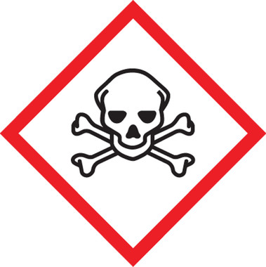 GHS (Globally Harmonized System) is a worldwide program for classifying chemicals in the workplace. GHS recognizes nine hazard pictograms. The pictograms identify the hazard which helps users take proper precautions to minimize adverse effects. GHS Skull and Crossbones pictogram indicates the following potential hazard: acute toxicity (fatal or toxic).