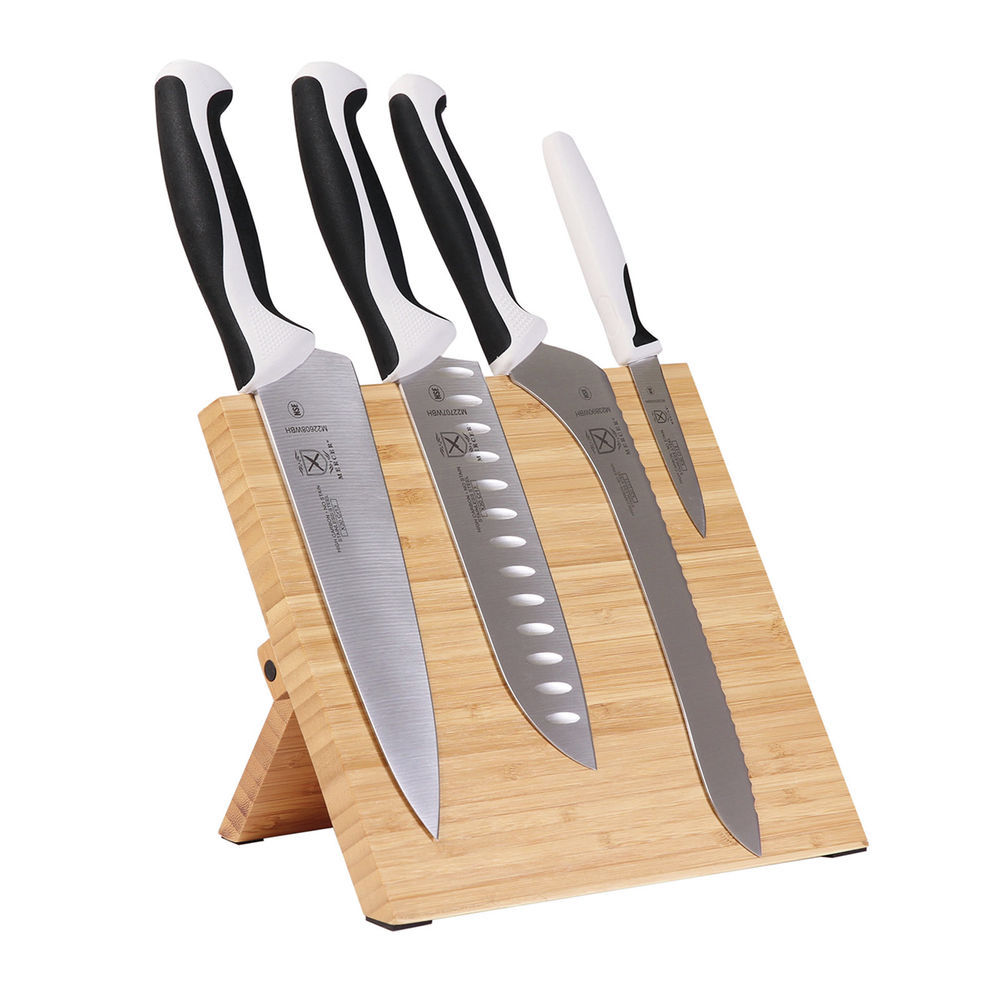 Mercer Culinary M21981WBH Millennia® 5-Piece Bamboo Magnetic Board and White Handle Knife Set