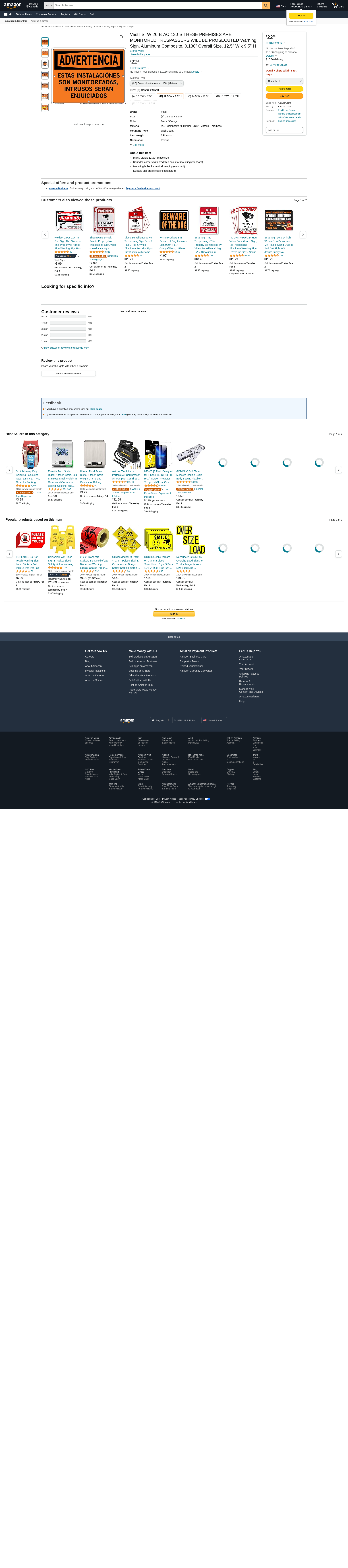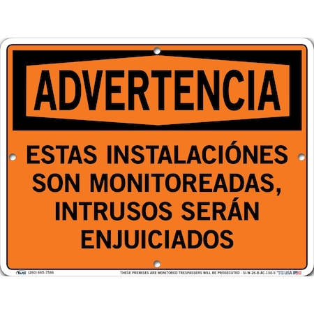 Vestil SI-W-26-B-AC-130-S THESE PREMISES ARE MONITORED TRESPASSERS WILL BE PROSECUTED Warning Sign, Aluminum Composite, 0.130" Overall Size, 12.5" W x 9.5" H