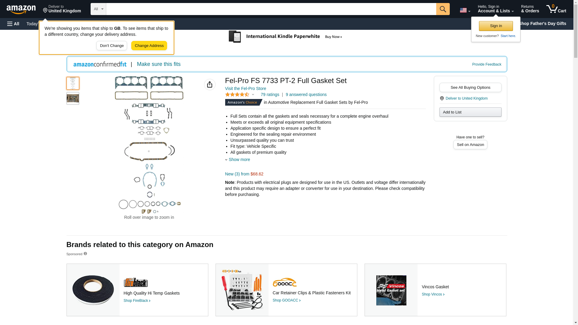 FEL-PRO FS 7733 PT-2 Full Gasket Set