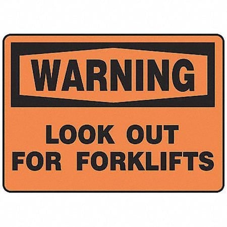 Accuform MVHR305VP Plastic Sign, Warning Look Out for Forklifts", 10" Length x 14" Width x 0.055" Thickness, Black On Orange, 10" Height, 14" Wide, 10" Length, Plastic, 10x14