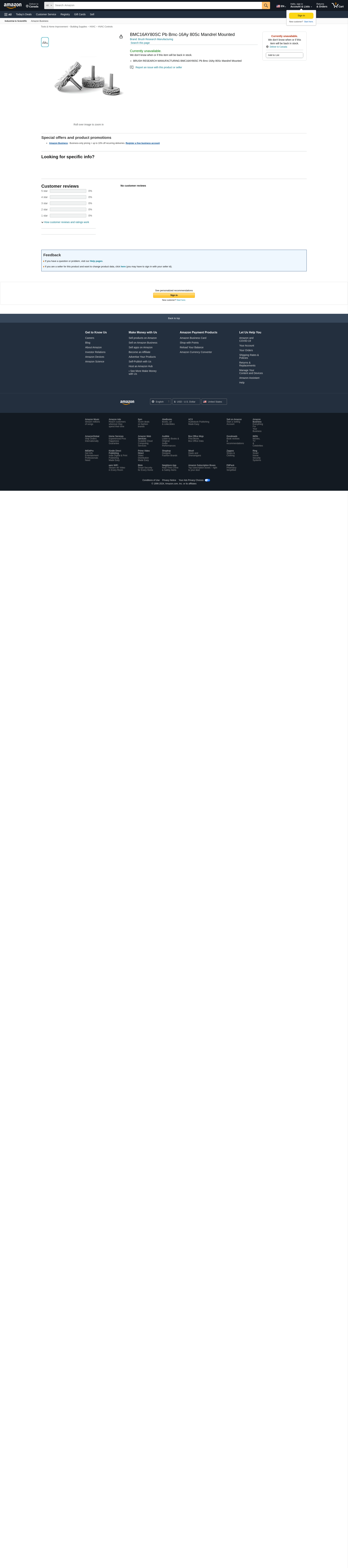 - BRUSH RESEARCH MANUFACTURING BMC16AY80SC Pb Bmc-16Ay 80Sc Mandrel Mounted