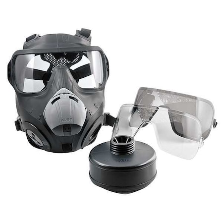 'Full Face Respirator Kit, Facepiece Material Polyurethane, Full Face Suspension Type 6 pt. with Mesh Headnet, Head Harness Material Rubber, Threaded, Cartridges Included No, L, Series PC50 Enforcer, Crowd Control, First Responders, Law Enforcement, Configured For Twin Port'
