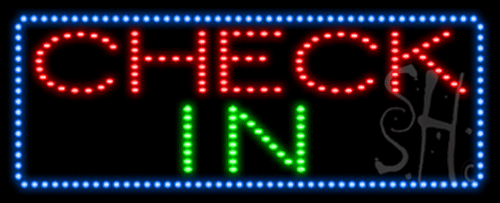 The Sign Store L100-7996 Check in Animated LED Sign - Blue, Red & Green - 13 x 32 x 1 in.