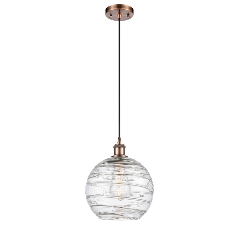INNOVATIONS LIGHTING 516-1P-AC-G1213-10 BALLSTON LARGE DECO SWIRL 10 INCH ONE LIGHT CLEAR GLASS PENDANT, ANTIQUE...