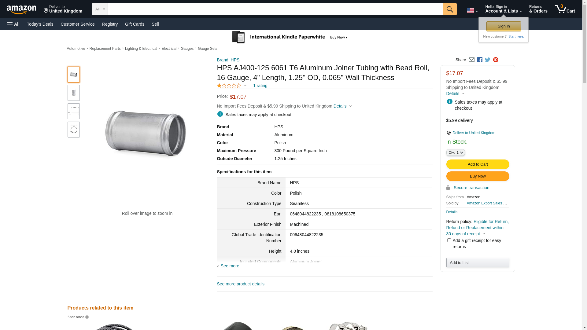 | torqued.io | HPS-AJ400-125 | 1 | -2 | 1 | 1 @ $14.47 |