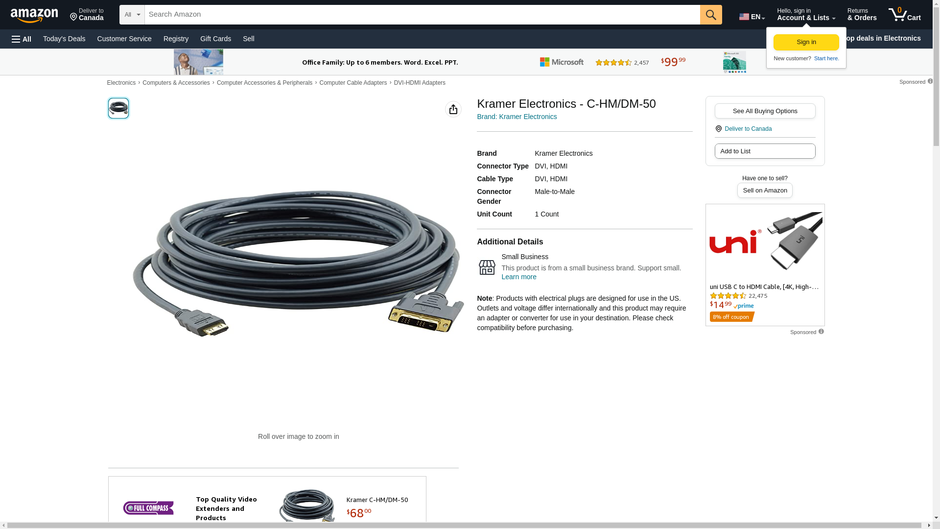KRAMER C-HM/DM-50 Kramer Electronics C-HM/DM-50 HDMI To DVI-D Cable HDMI/DVI For A kramer_c_hm_dm_50_hdmi_male_to_dvi_1020570.jpg
