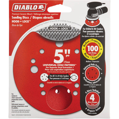 Diablo DCD050100H04G 5 in. 100-Grit Universal Hole Random Orbital Sanding Disc (4-Pack)