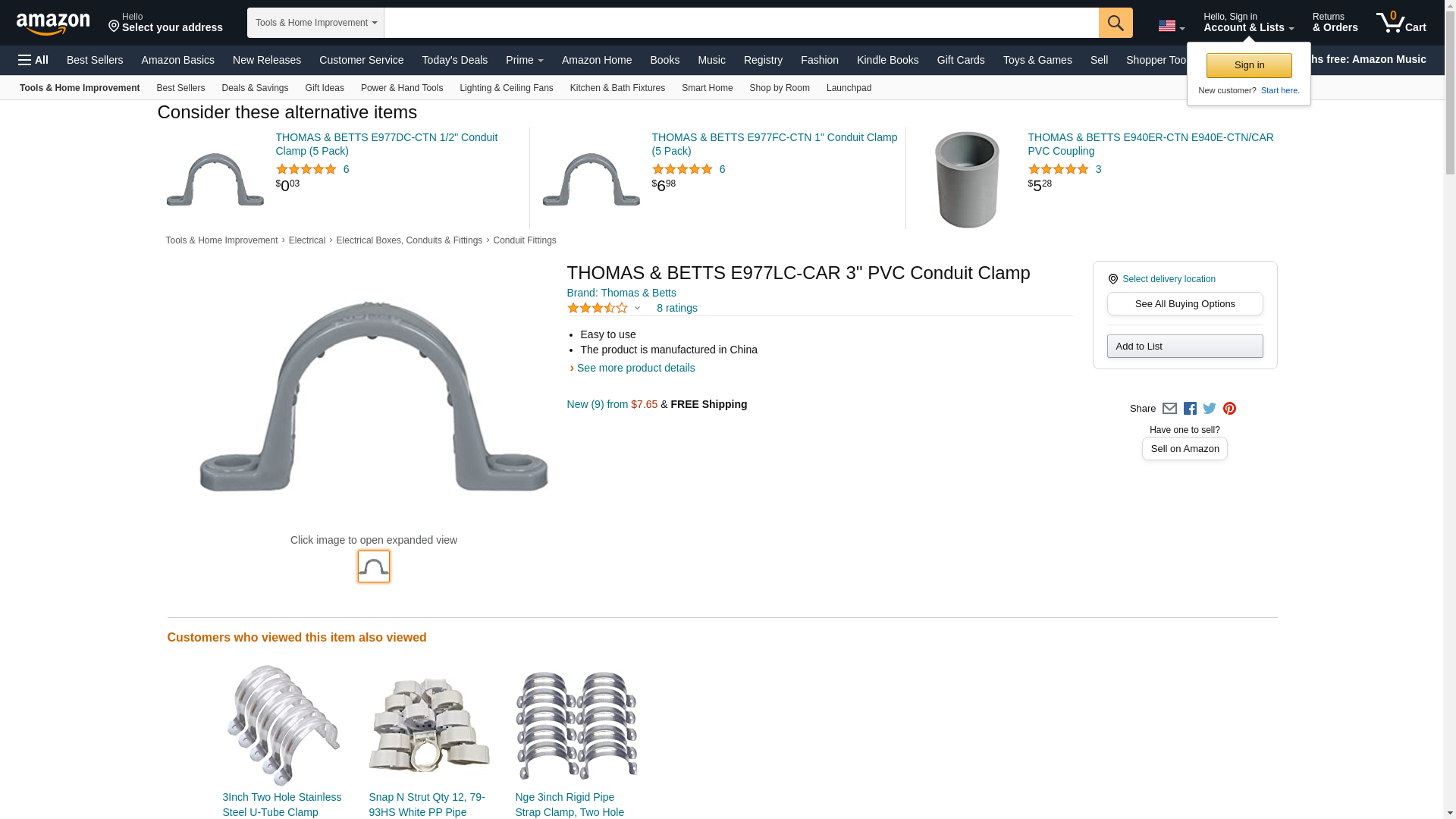 Sold as 6 UNITS at $3.57 per unit. (1 unit = each.) 3" clamps. Support strap designed for PVC, and conduit. Usable for installations of rigid steel. Allows conduit to expand and contract freely. Complete corrosion resistant system. Not supplied with screws. Gray. Manufacturer number: E977LC-CAR. SKU #: 3237567. Country of origin: (TBA). Distributed by Thomas & Betts.