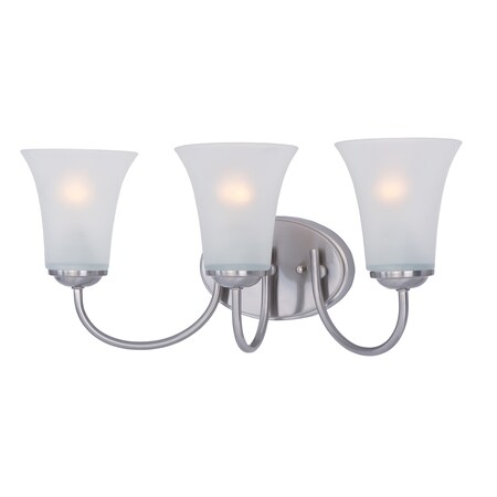 Maxim 10053FTSN Logan Modern Frosted Glass Bath Vanity Wall Mount, 3-Light 180 Total Watts, 9"H x 19"W, Satin Nickel