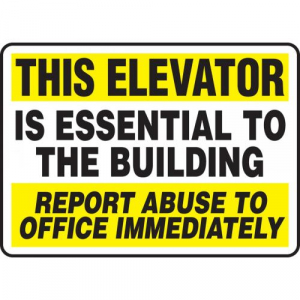 This Elevator Essential To The Building Report Abu 10X14 .055 Polyethylene Sign