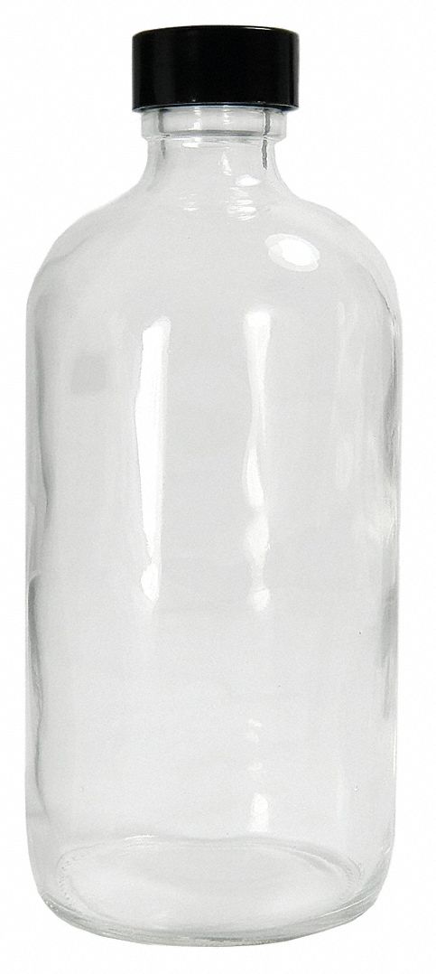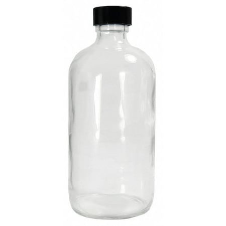 Qorpak GLC-01205 Boston Round Bottle with 28-400 Black Phenolic Pulp/Vinyl Lined Cap, 480 mL, Clear (Pack of 12)