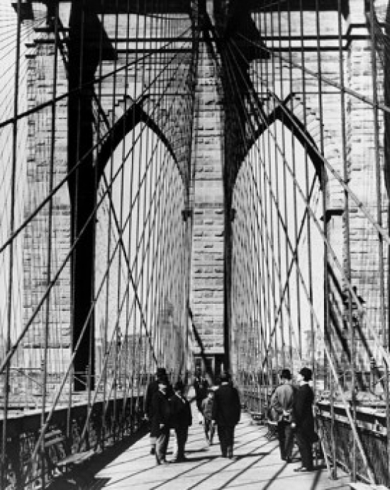- Group of people walking on a suspension bridge Brooklyn Bridge New York City New York USA c 1883