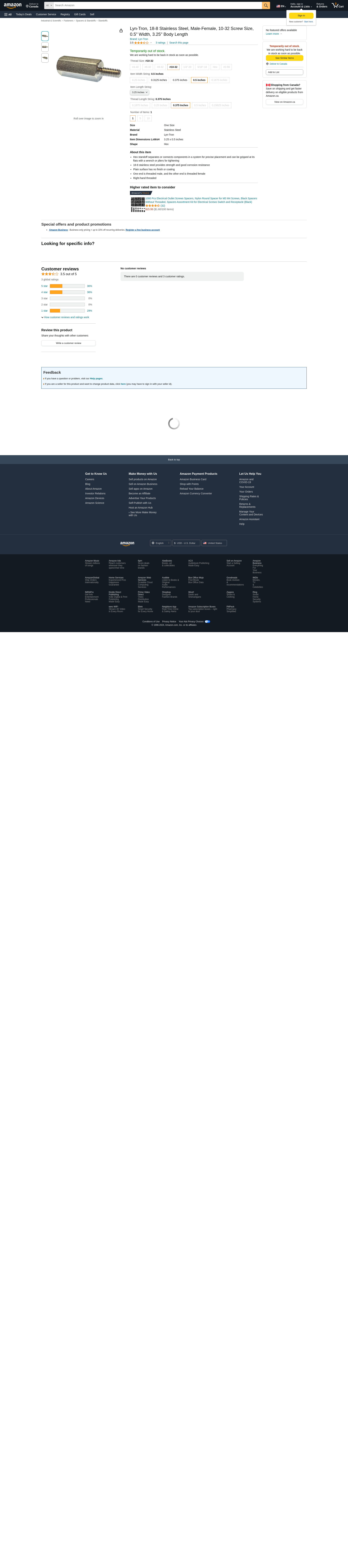 Lyn-Tron, 18-8 Stainless Steel, Male-Female, 10-32 Screw Size, 0.5" Width, 3.25" Body Length