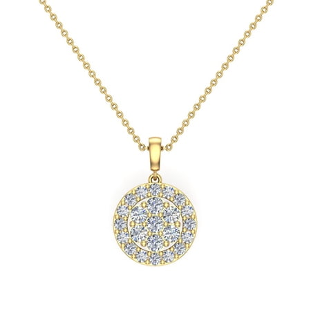 14K Gold Necklace Cluster Diamond Pendant 0.60 ctw with 20" Chain (G,I1) Premium Quality