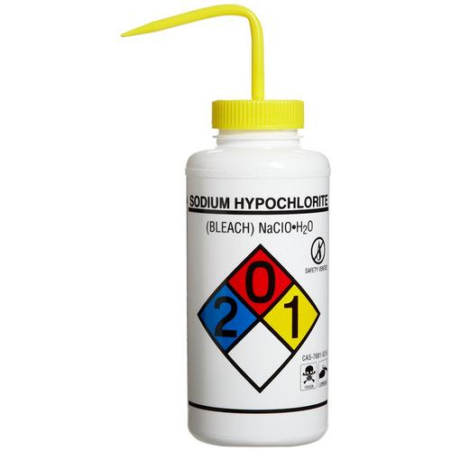 Bel-Art Safety-Labeled 4-Color Sodium Hypochlorite Wide-Mouth Wash Bottle 11732-0015 (Pack of 4) Lab Equipment | spectraservices.com