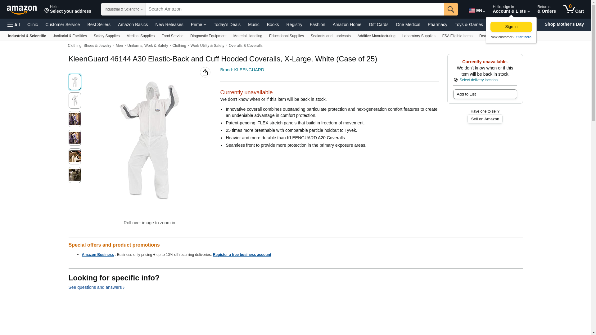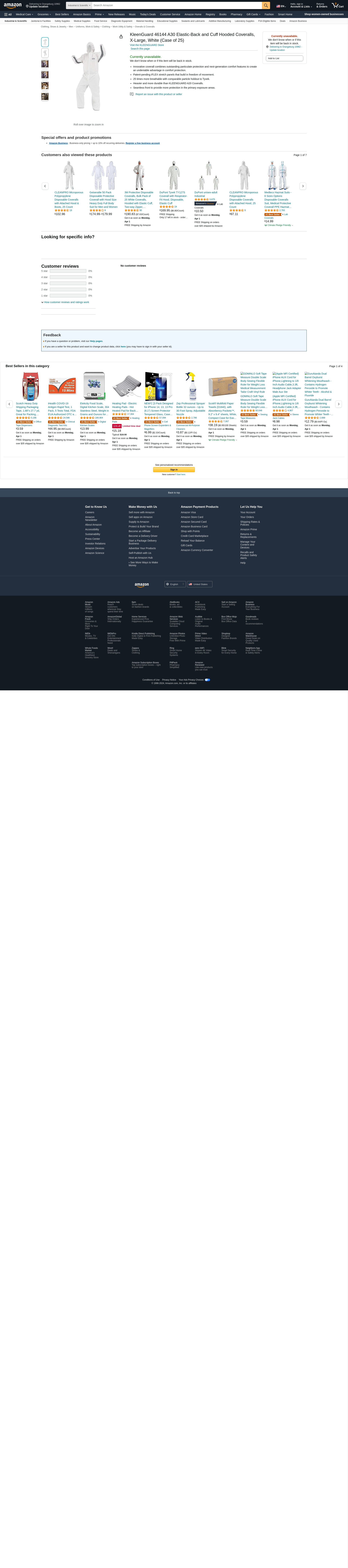 KleenGuard 46144 A30 Elastic-Back and Cuff Hooded Coveralls, X-Large, White (Case of 25)