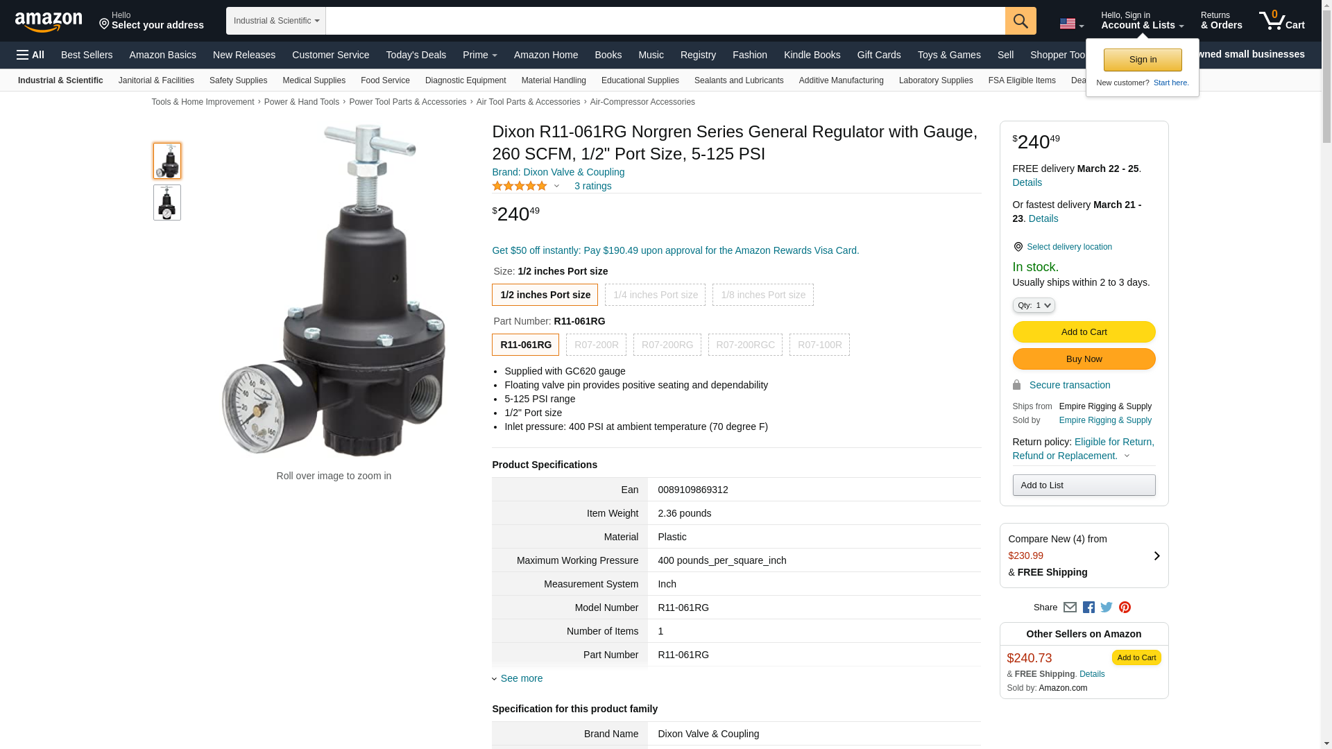 | kscdirect.com | DIX R11-061RG | 1 | 1 | 1 @ $296.37 | |