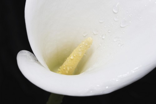 Posterazzi DPI12288067 Close Up of White Arum Or Calla Lily Covered in Water Droplets Viewed from Above Against A Black