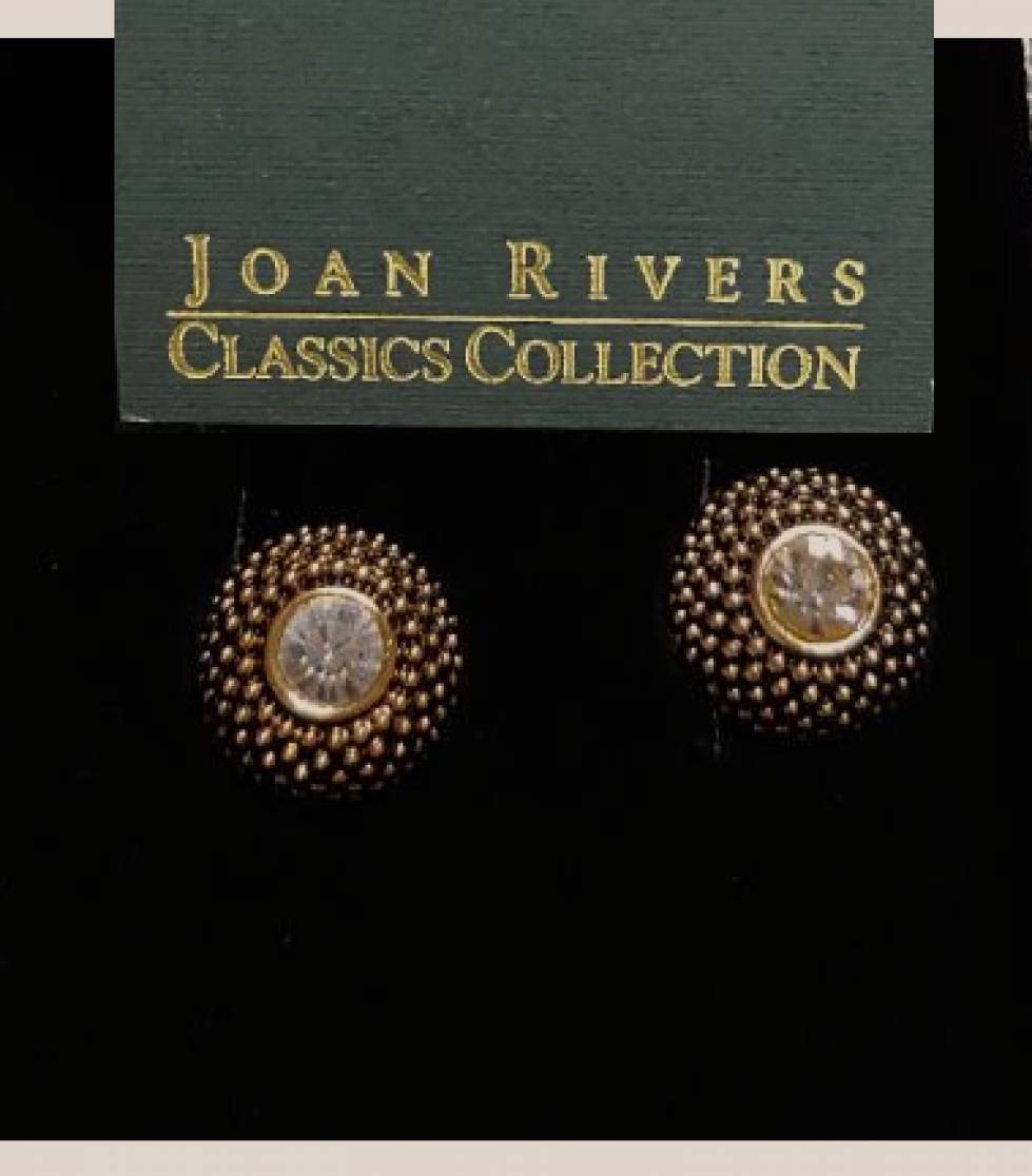 Designer Jewelry JRGOLDDISC Joan Rivers Clip Earring yellow gold disc boxed white clear crystal NWT