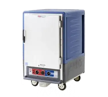 Metro Insulated C5 3 Series Holding Cabinet with Insulation Armour, 1/2 Height, Moisture Module, Full Length Clear Door, Fixed Wire Slides, 120V, 2000W, Blue