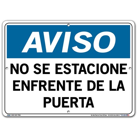 Vestil Notice SignSI-N-29-C-AL-040-S 29 14.5X10.5 Aluminum .040 Do Not Park in Front of Door NO SE ESTACIONE ENFRENTE DE LA PUERTA