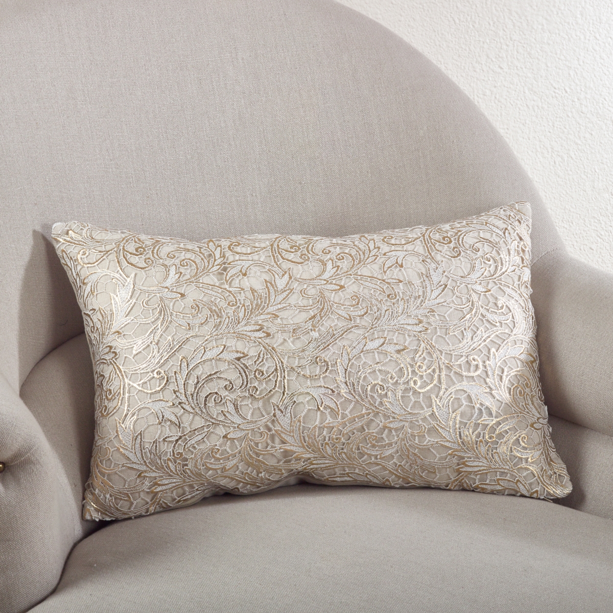 SARO 030.N1320B 32 x 20 in. Lace Design Down Filled Throw Pillow Natural