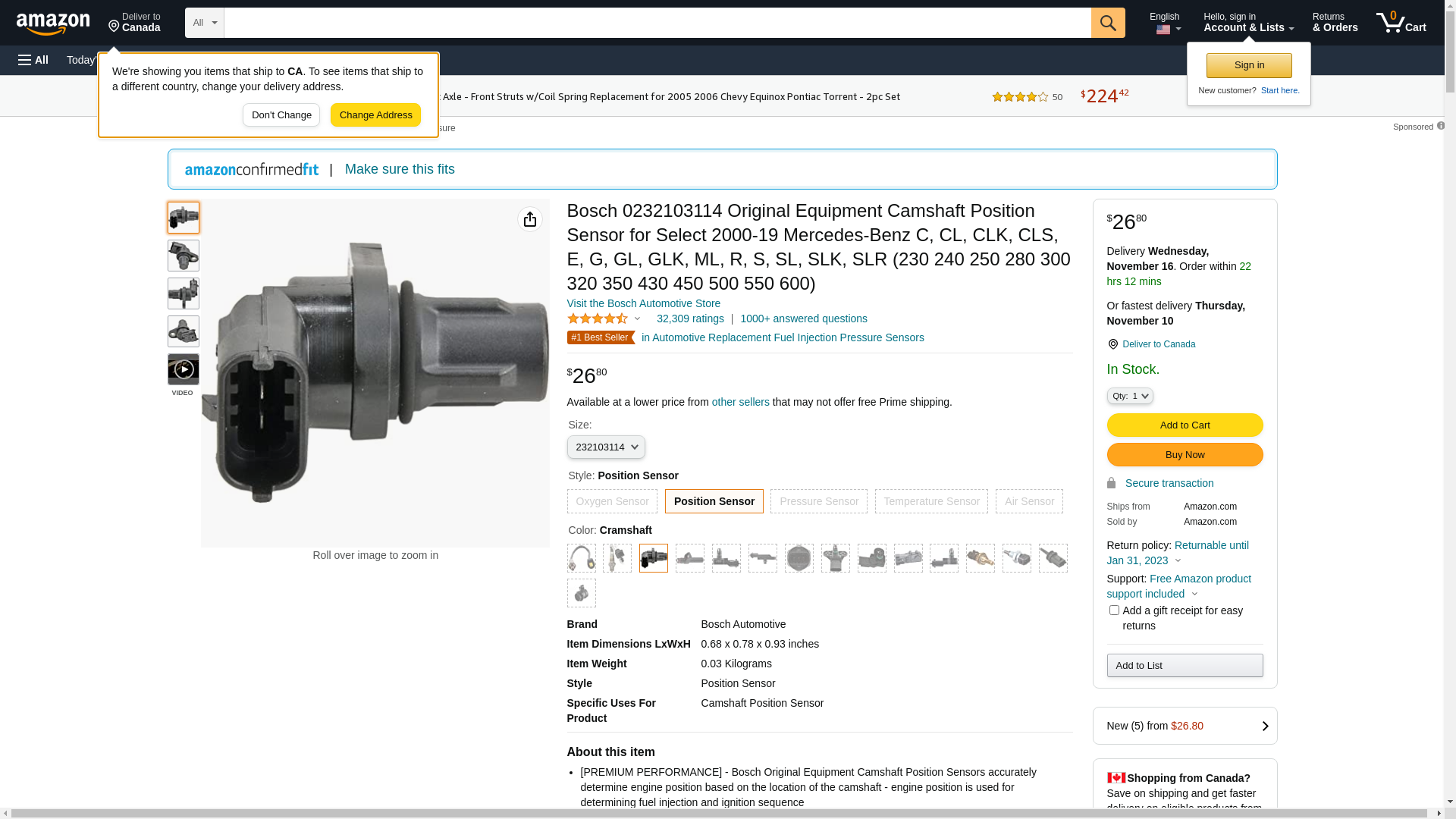 Bosch Original Equipment 0232103114 Camshaft Position Sensor