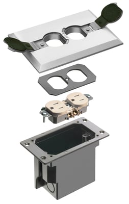 Arlington 1-Gang Non-metallic adjustable floor box includes duplex receptacle, NM94 connector, back plate on non-metallic covers and gasketed cover. It also contains five cover plate screws of size 6 - 32 and threaded plugs or flip lids. This rectangular box has maximum capacity of 20 Cubic-Inch. It measures 4.125 Inch x 6 Inch x 3.738 Inch. Floor box features plastic construction with nickel-plated finish for added corrosion resistance. It is suitable for existing floors flush-to-the-floor inst