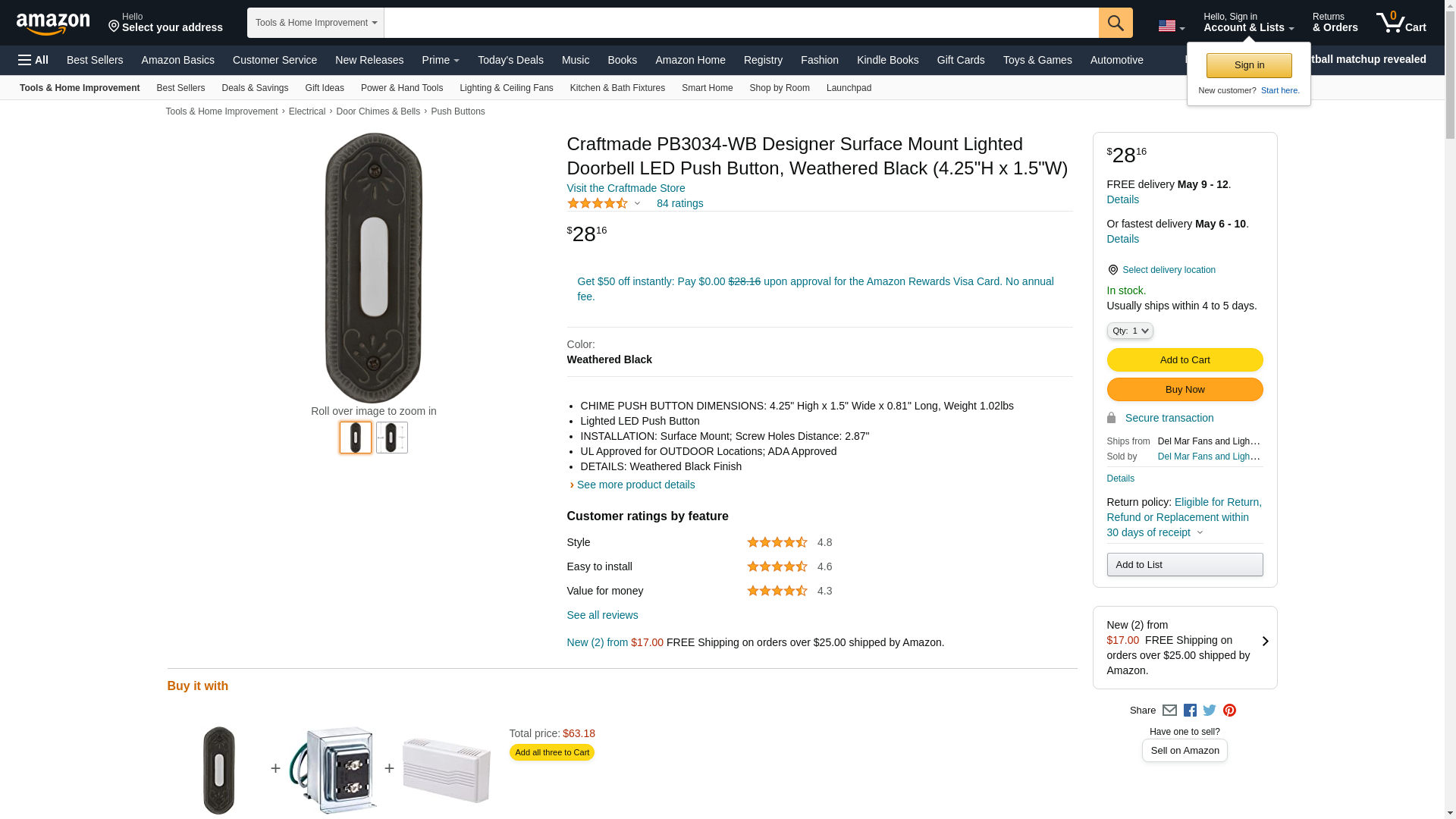 ![]() gordonelectricsupply.com | PB3034-AZ | 1 | Craftmade Orders usually Ship Next Day | 1 | 1 @ $20.00 |