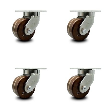 Extra Heavy Duty Kingpinless 6” x 3” High Temperature Phenolic Swivel Caster Set - 8,000 lbs. Total Capacity - Set of 4 - Service Caster Brand