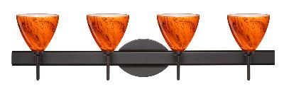 4SW-1779HB-BR Finish: Bronze, Shade Color: Habanero Features: -Bath vanity.-Available in several glass shades.-Handcrafted glass.-Suitable for use in an open fixture.-Dimmable with standard incandescent dimmer.-Can be oriented upward or downward.-Canopy allows direct wiring without outlet box.-Suitable for damp location (interior use only).-UL or ETL listed. Includes: -Accommodates (4) 40W G9 halogen bulbs (included). Options: -Available in bronze, polished nickel or satin nickel finishes. Construction: -Stamped steel construction. Specifications: -120 Volts. Dimensions: -Installs directly to 4'' octagonal outlet box with 1.75'' left or right offset.-Overall dimensions: 7.75'' H x 30.375'' W x 6'' D. Collection: -Mia collection.