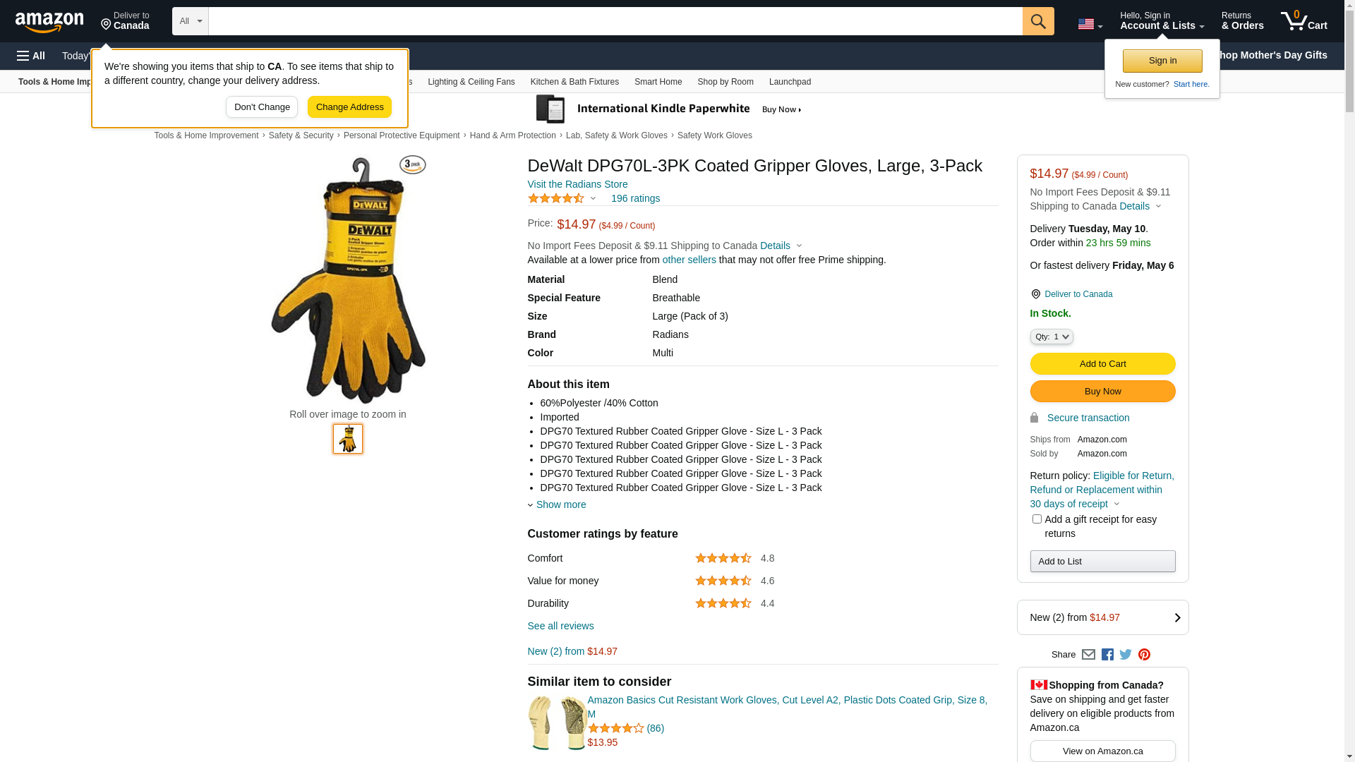 DeWalt DPG70L-3PK Coated Gripper Gloves, Large, 3-Pack