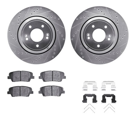 Dynamic Friction Company Rear Brake Rotors-Drilled and Slotted-Silver with 3000 Series Ceramic Brake Pads includes Hardware 7312-03089