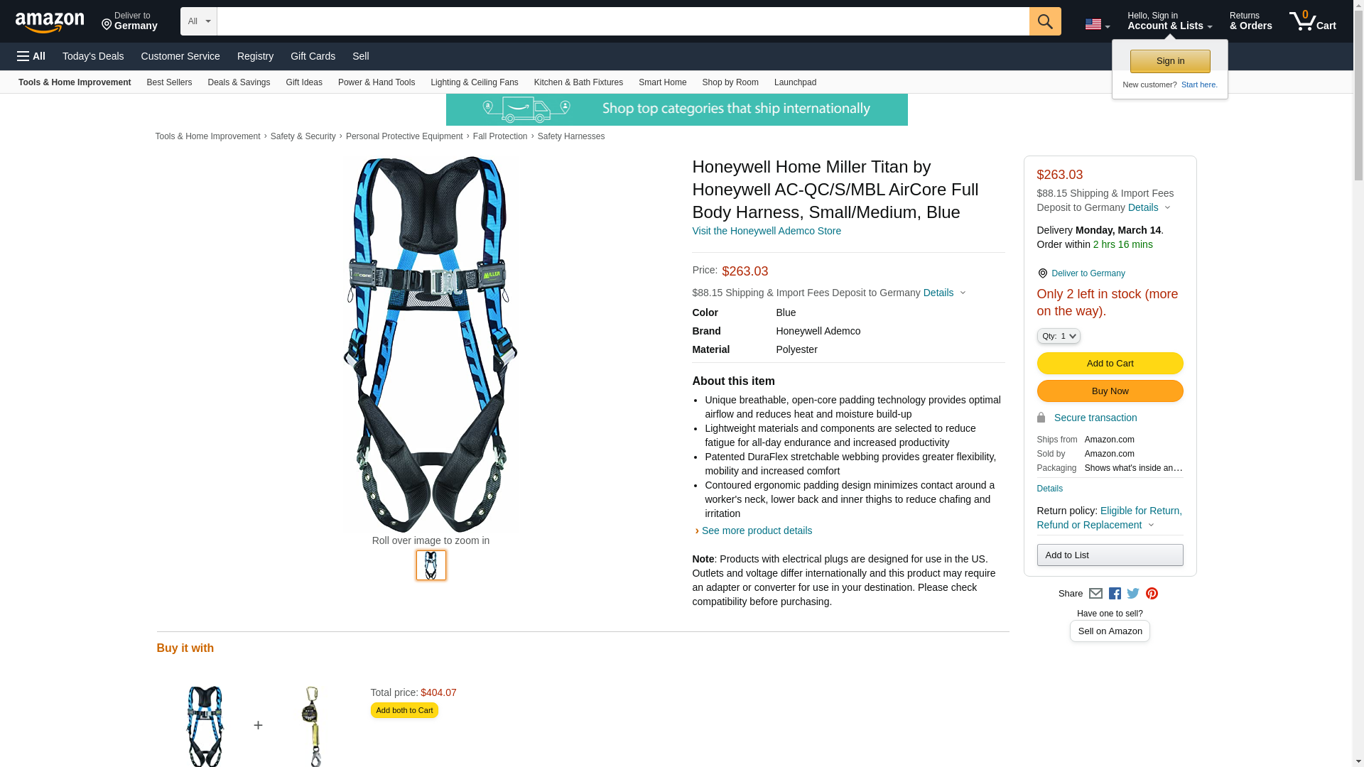 Honeywell Home Miller Titan by Honeywell AC-QC/S/MBL AirCore Full Body Harness, Small/Medium, Blue