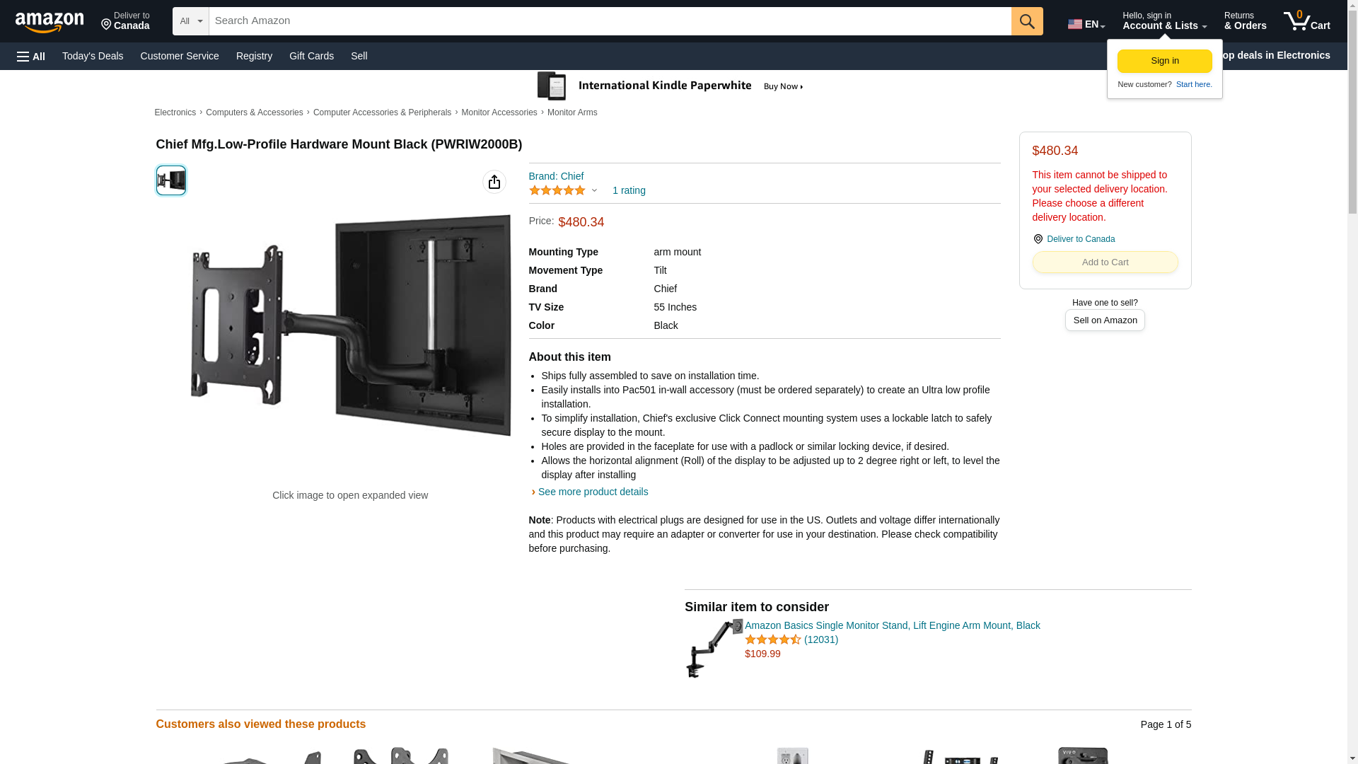 Chief Mfg.Low-Profile Hardware Mount Black (PWRIW2000B)
