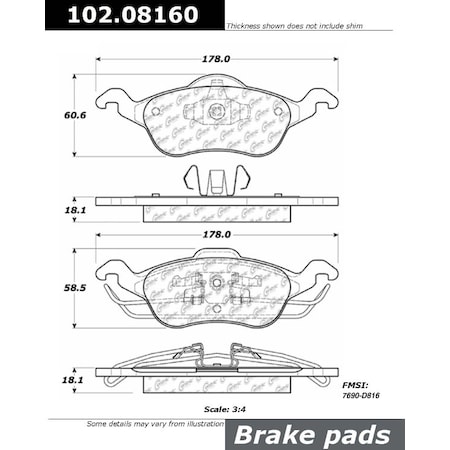 Centric C-Tek Semi-Metallic Brake Pads with Shims 102.08160 | 102.08160