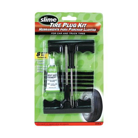 Slime T-Handle Tire Plug Kit User-Friendly, 8-Piece Kit Includes: 0.41 Oz. Rubber Cement Tube, Five Plug Strings, T-Handle Tire Plugger And Tire Reamer. Note: Will Not Work On Sidewall Punctures.