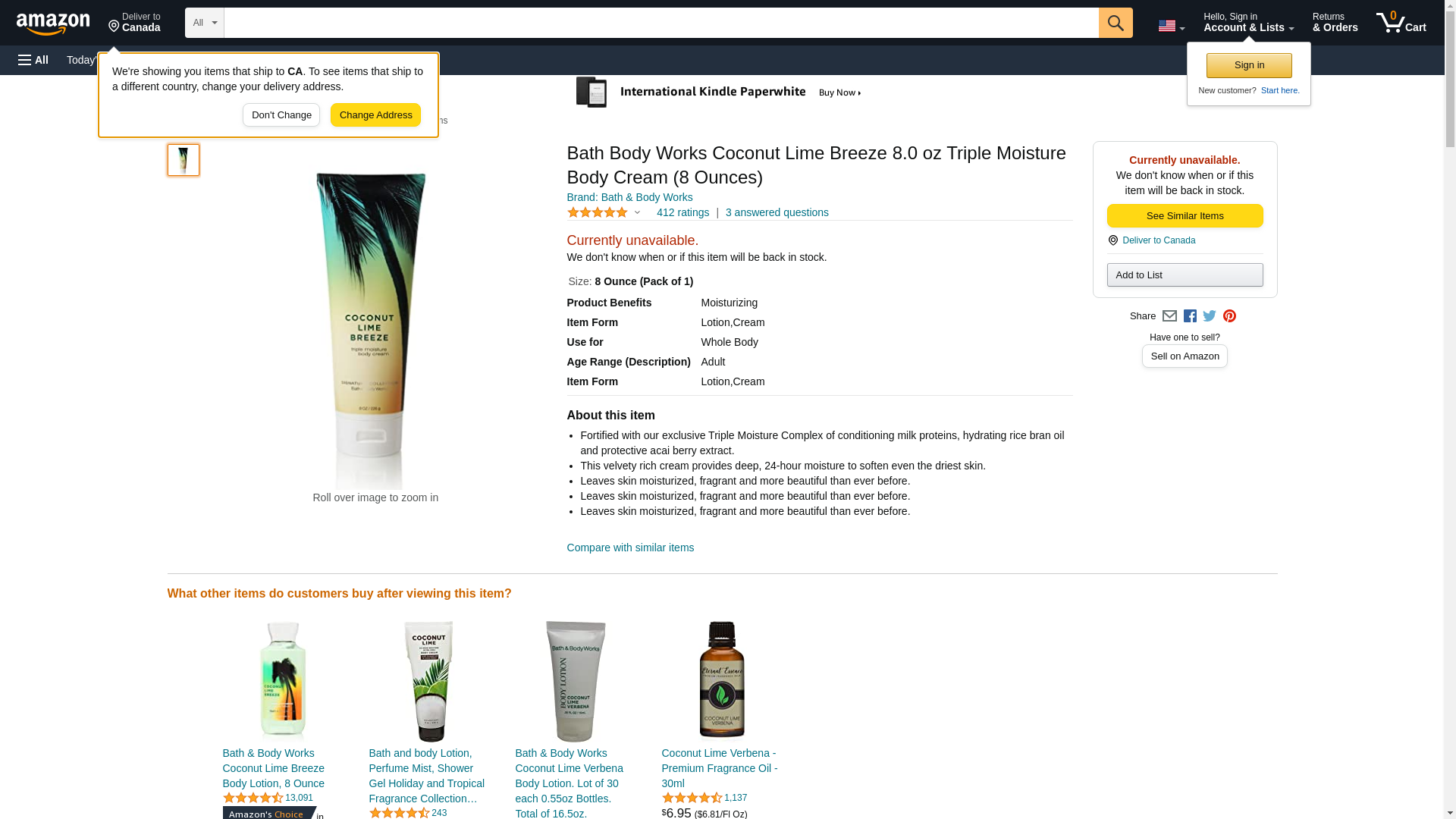 Bath & Body Works Coconut Lime Breeze 8.0 oz Triple Moisture Body Cream: Maxedbuy.com