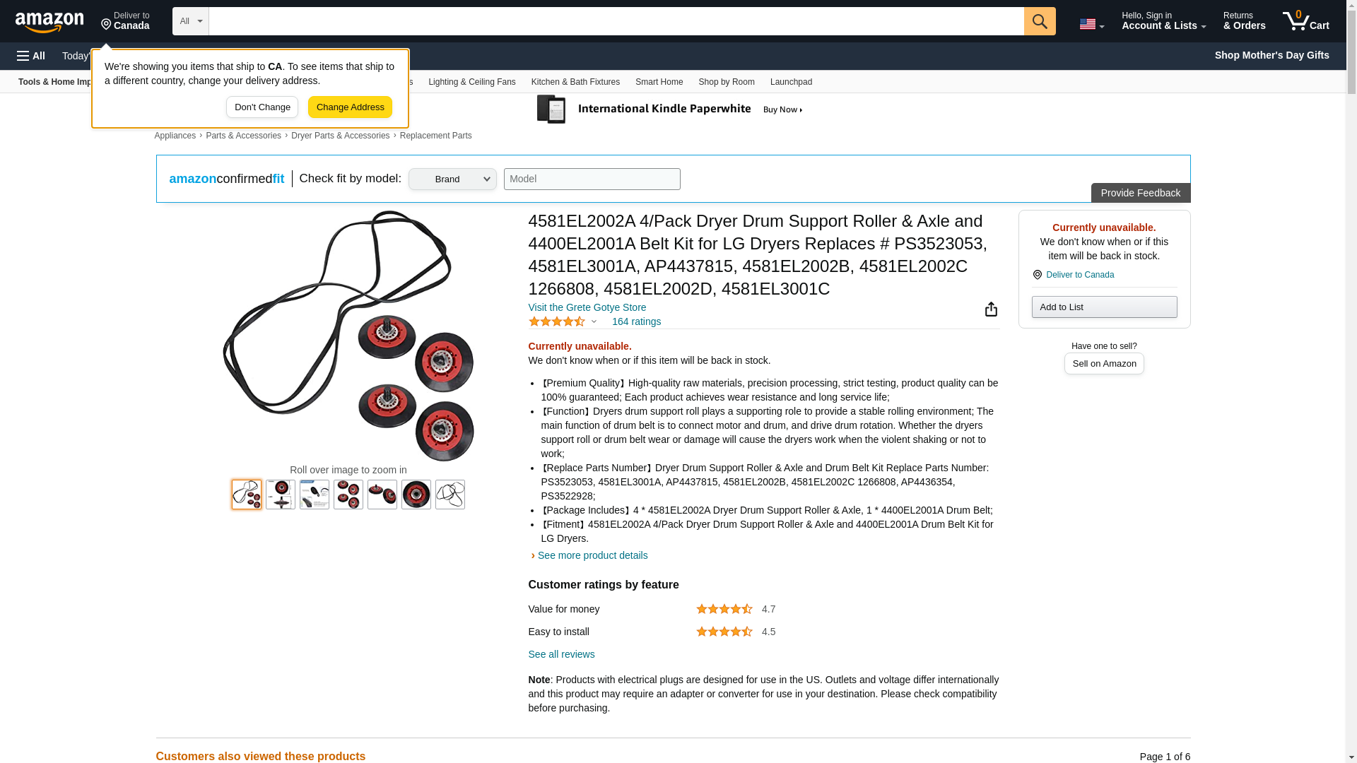 - 【Package Includes】 4 * 4581EL2002A Dryer Drum Support Roller & Axle, 1 * 4400EL2001A Drum Belt;