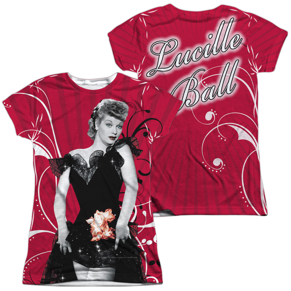 Trevco LB280FB-JSPP-4 Lucille Ball & Classy Lady Front & Back Print Junior Cap Sleeve Polyster Crew Neck T-Shirt, Wh