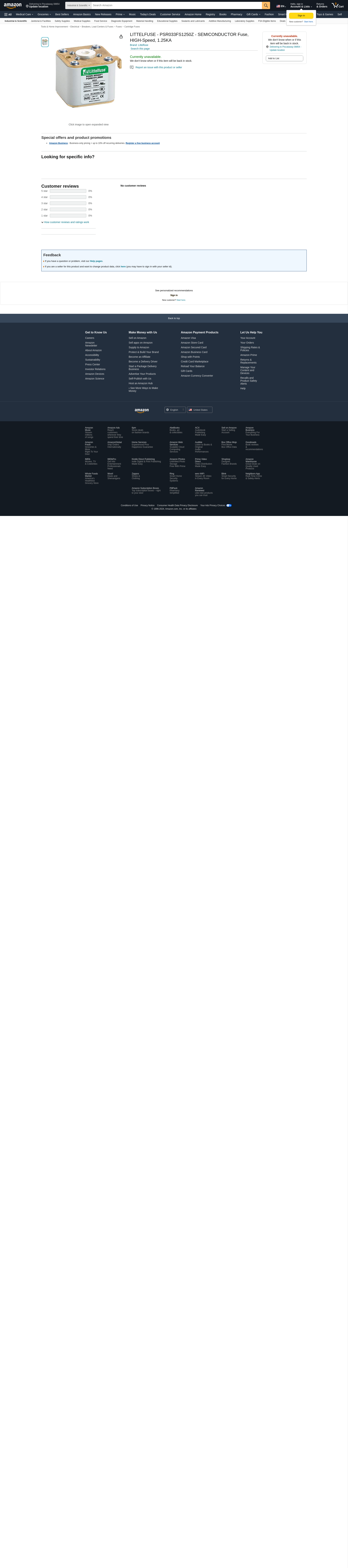 Littelfuse Semiconductor Fuse, High-Speed, 1.25Ka - PSR033FS1250Z