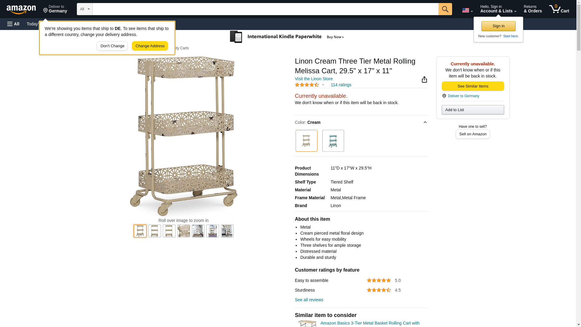Linon Cream 3-Tier Cart Metal, 29.5" x 17" x 11",